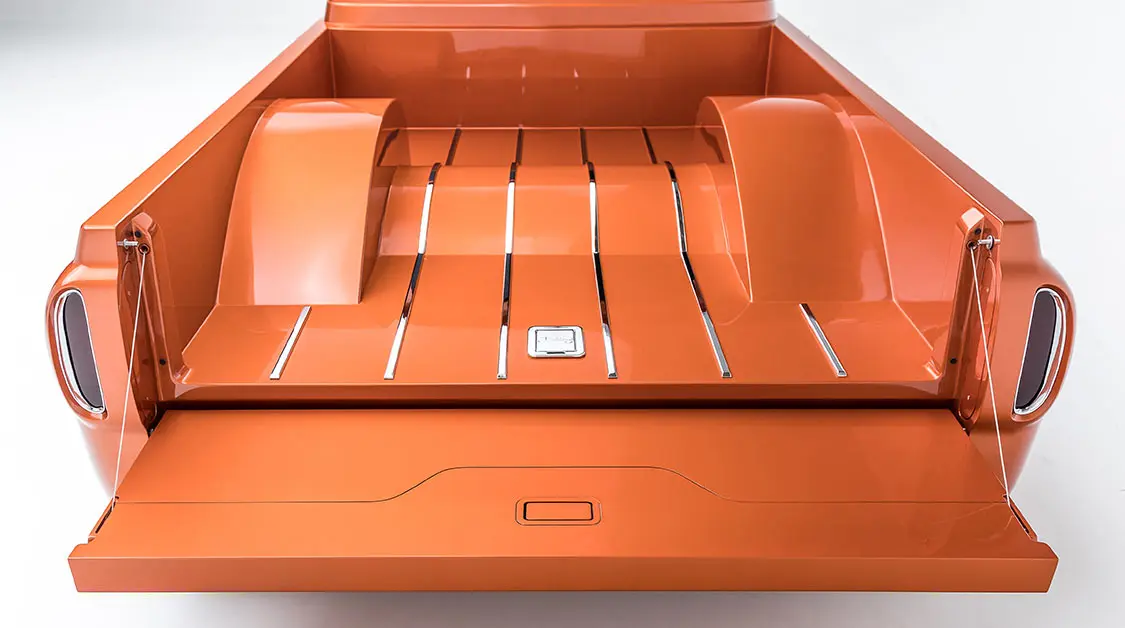 They also chose a custom Burnt Orange paint from PPG. But the lines on those wheelwells are downright sexy, right? Well, Betsy gets even more gorgeous inside the cab.