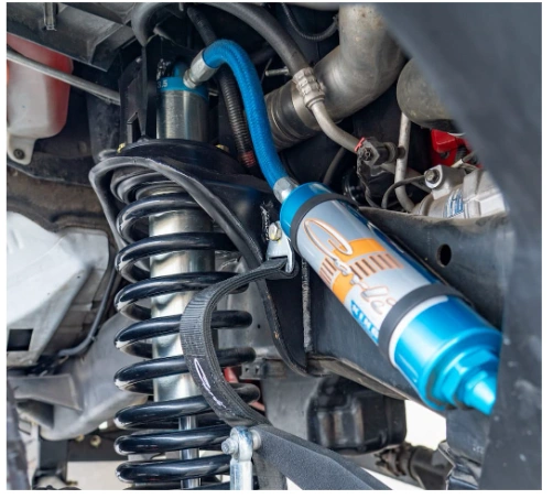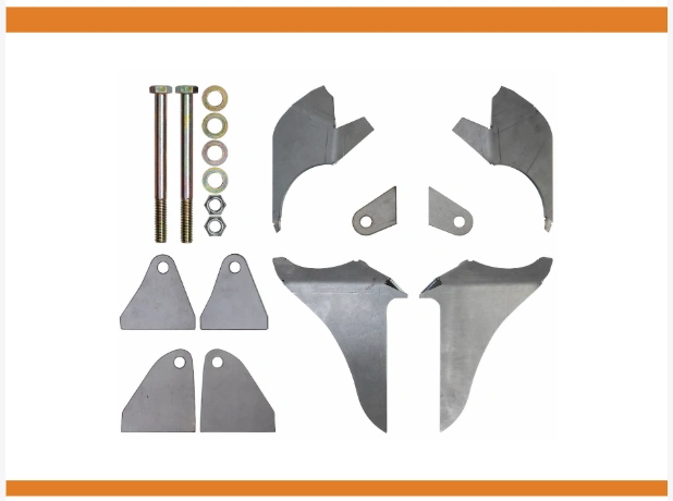 PRODUCT BREAKDOWNMOTOR-MOUNT DOUBLERSThese ¼” steel plates weld directly onto the factory mount reinforcing the factory sheet metal while converting the mounting channel to a bolt hole, eliminating vertical slippage in high horsepower, whoop-pounding situations. COIL-BUCKET GUSSETSLaser-cut and CNC-bent, these gussets bridge the gap between the coil bucket and frame rails—both front and rear—locking everything together and preventing movement.