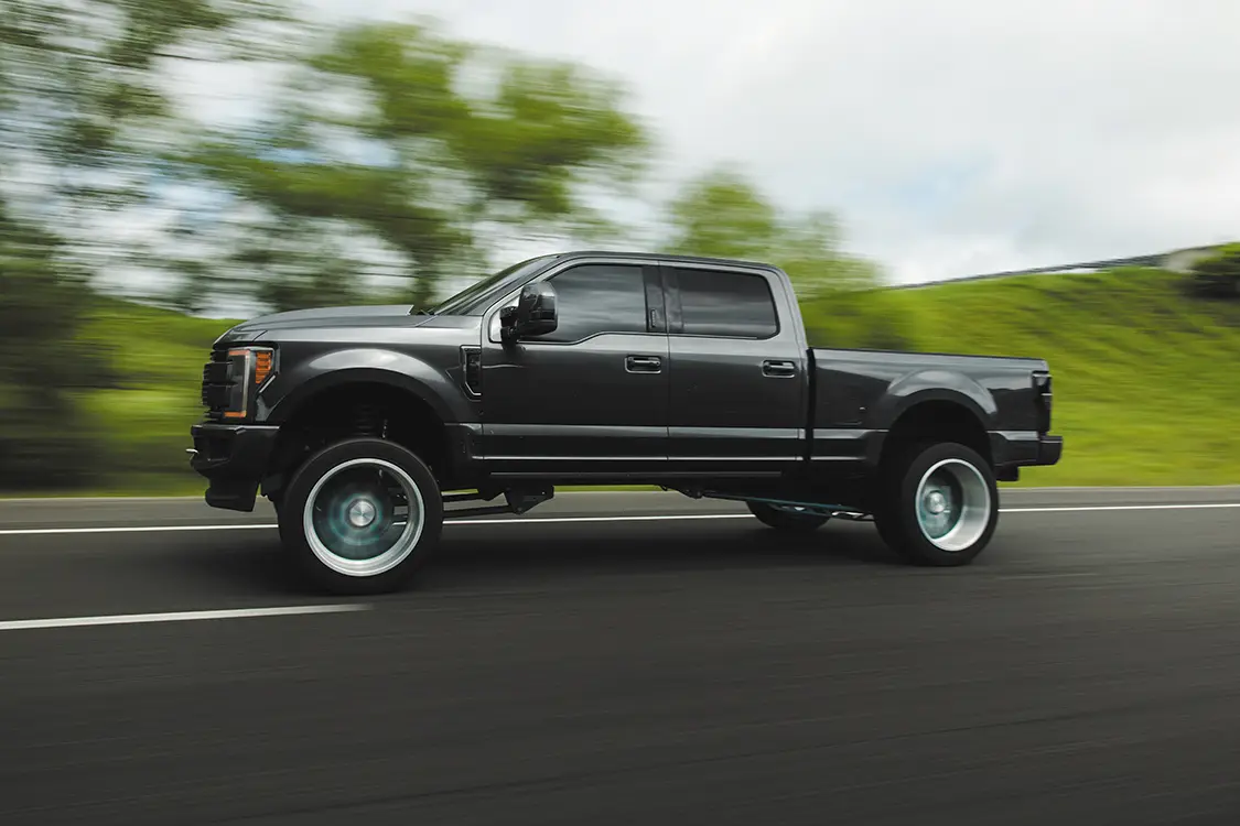 This truck actually wasn’t even the one originally planned for us to shoot. Having just snagged a 2022 Ram and throwing a downpipe on it, the truck started giving Chris major motor issues after only six months of ownership. That led him to a fork in the road: wait and see if the dealer will make it right (spoiler: they refused to help), or jump ship and find something that better fits the always-on-the-road lifestyle Chris lives. As luck would have it, this 2018 Ford F-250 Platinum popped up, and Chris bought it with only two months to have something he felt was worthy of parking at Music City Showdown. Mike Lang of High Altitude Trucks pieced everything together, including the perfectly paint-matched exterior pieces done by Carstar Autobody and Paint. Some might call building a show-ready truck in two months a scramble, but Chris and Mike love a good challenge.