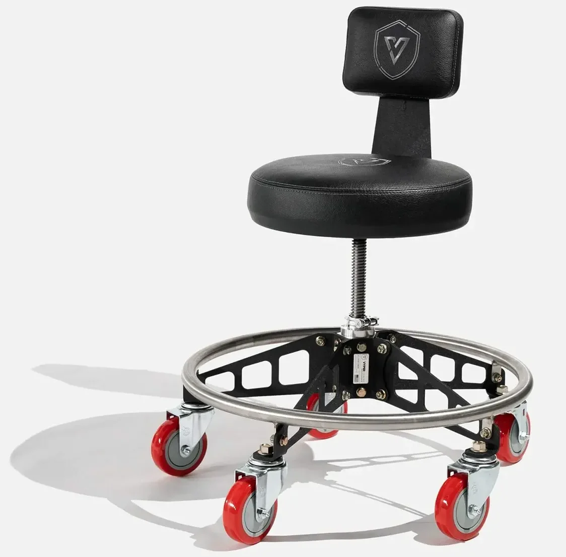 In the course of trekking through various buildings with our good friend and custom automotive builder Jimmyshine of Shine Speed Shop in Orange County our lower backs and tootsies (feet) were starting to give out. Just so happened we were right across the Vyper Industrial booth that had on display an array of comfortable looking shop seats Like a moth to a flame I ventured over, actually, I stumbled over and immediately sat down to relieve the pain in my back and was instantly surprised at the softness and the back support this chair provided. I didn’t want to get up.
