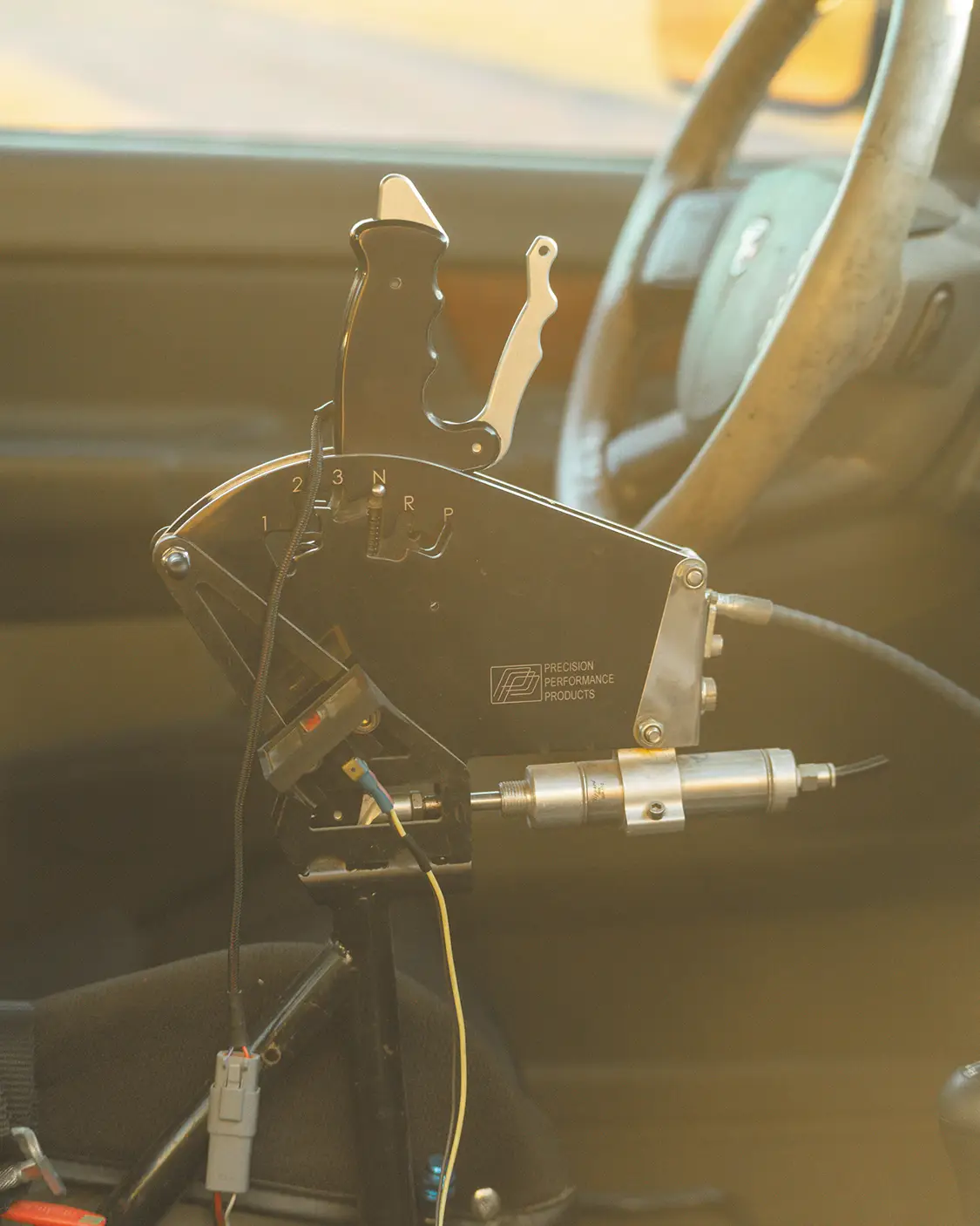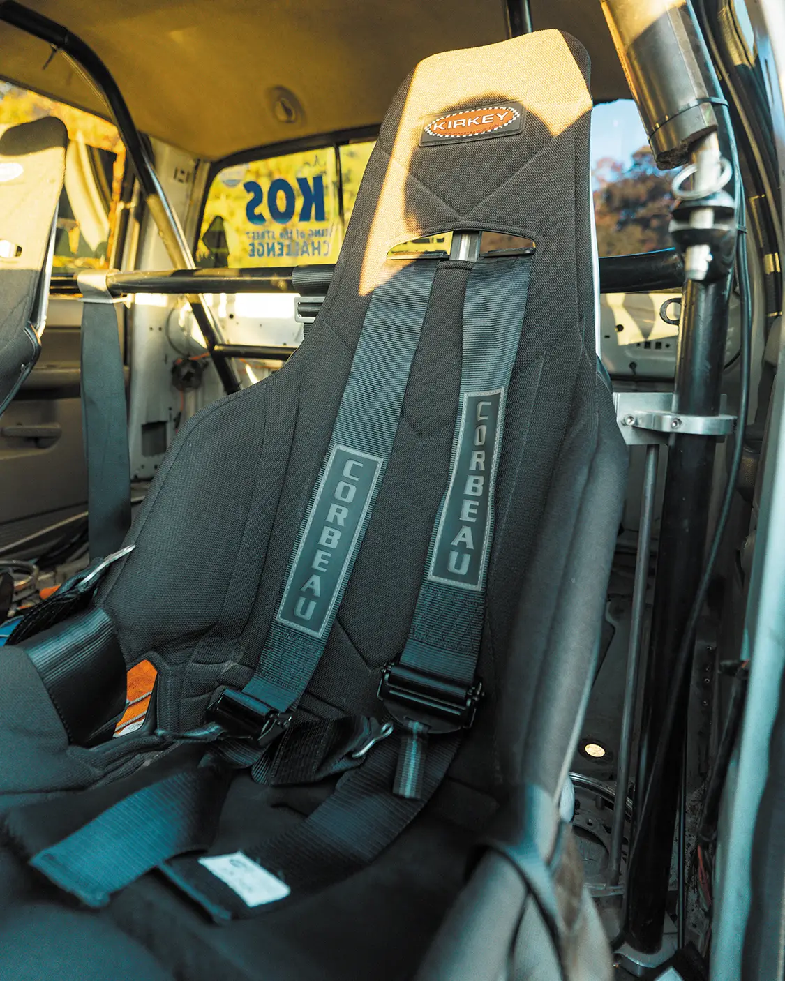 Behind the power plant is a fully built manual-valve-body 48RE from Chris and the Unrivaled team. The setup is simple on purpose. The ratchet shifter gives the driver direct control of every gear change with no electronics deciding anything. Inside, the cab follows the same logic. Two race buckets, a full cage, and only the factory dash pad and pillar trim are left in place. Everything else has been pulled to save weight and to make room for the safety gear a truck at this level actually needs. It’s built to do a job, and every part of the interior reflects that. Oh yeah, did we mention it still has a factory headliner?
