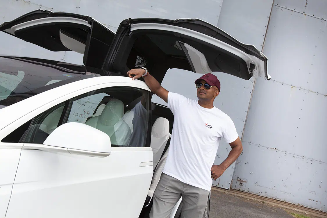 Andrew Dharman, a London-based general practitioner, admits it was originally his wife, Kasiika, who suggested they get a Model X, but adds, that at the time, “I was like, no way! They’re electric!” He had never even considered owning an electric car because he was so enamored with the power of gas. Interestingly, he now absolutely loves the power of batteries.