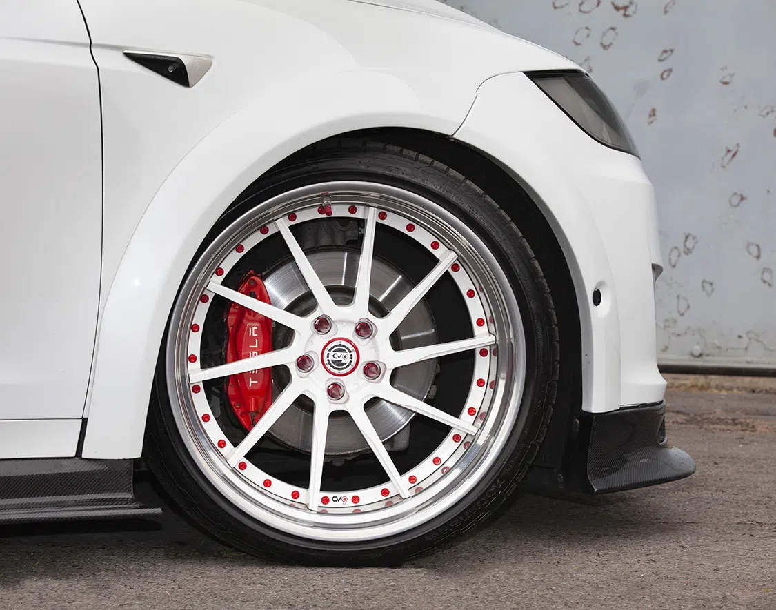 The Model X came with factory air suspension, and Andrew added Evolution Airmatic lowering links to retain full functionality while achieving a lower ride height on demand. The wheel arches were then filled with a set of Vossen 22-inch wheels, meticulously considering the choice of Continental SportContact 6 tires, as the intention was always to push the Tesla to its limits.
