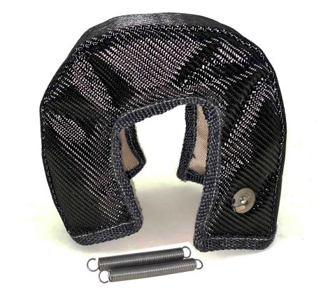 Fitted exhaust heat blanket reduces turbo lag and increases turbo spool time while significantly reducing under hood temperatures. An excellent heat barrier protecting the hood, hoses, and painted surfaces from residual heat damage. The Prosport turbo blanket comes with stainless steel anchoring hooks incorporated in the shield along with free spring clips to make securing the blanket to your turbo fast and easy.