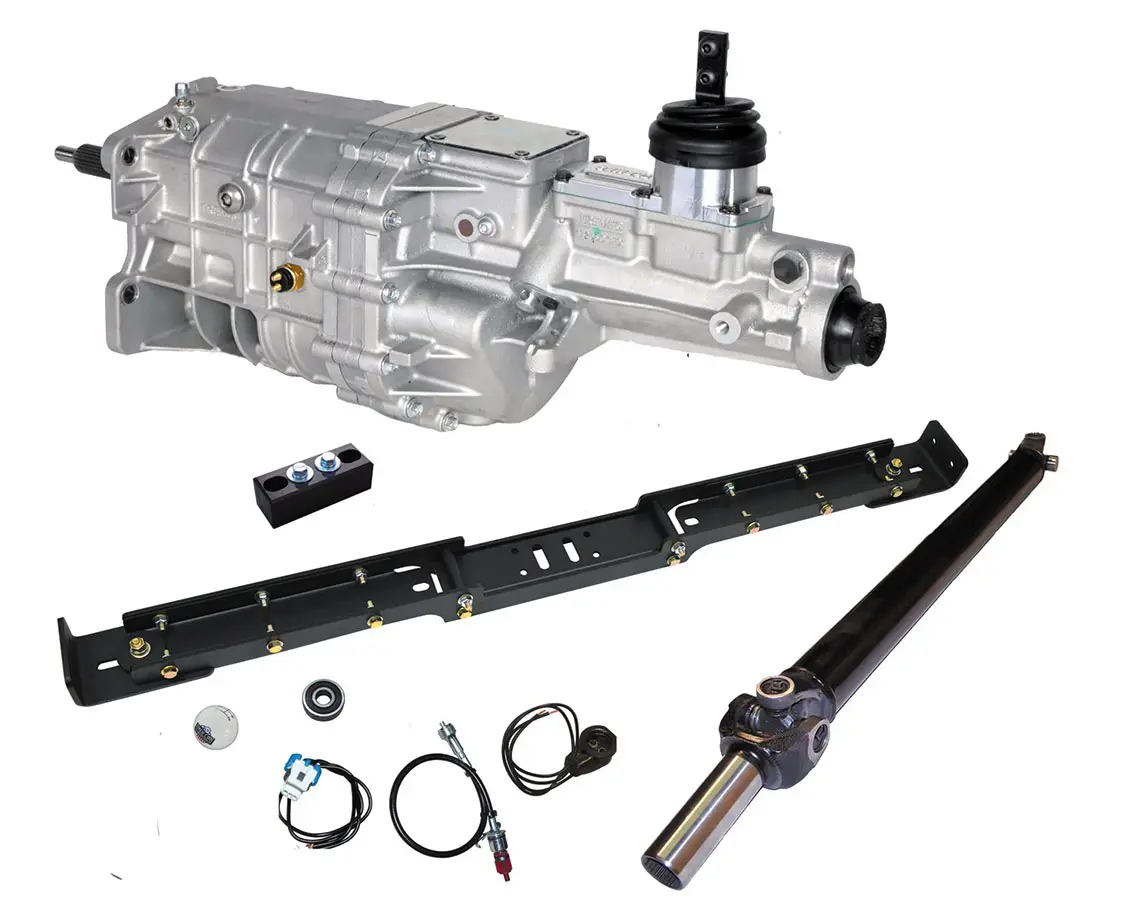 They feature either the TREMEC TKX 5-speed or the Magnum 6-speed. Each kit comes as a complete turn key system with transmission, bell housing, clutch kit, flywheel, crossmember and driveshaft. Optional parts include a bolt in hydraulic clutch conversion.