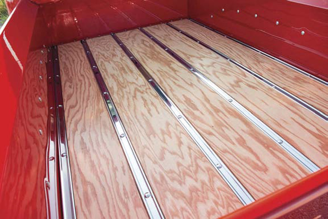 While the bed was a good find, it also needed a lot of time and attention. Jeremy’s wife bought him a stud puller and he handled the task of straightening the body himself. The bed floor was completely rusted out, but Jeremy had planned to build a new, raised floor anyway. To complete that, he employed his wife and son, and together they raised the bed floor and fenders, using a set from an old 1966 Ford he had rolled in an accident as a teenager.