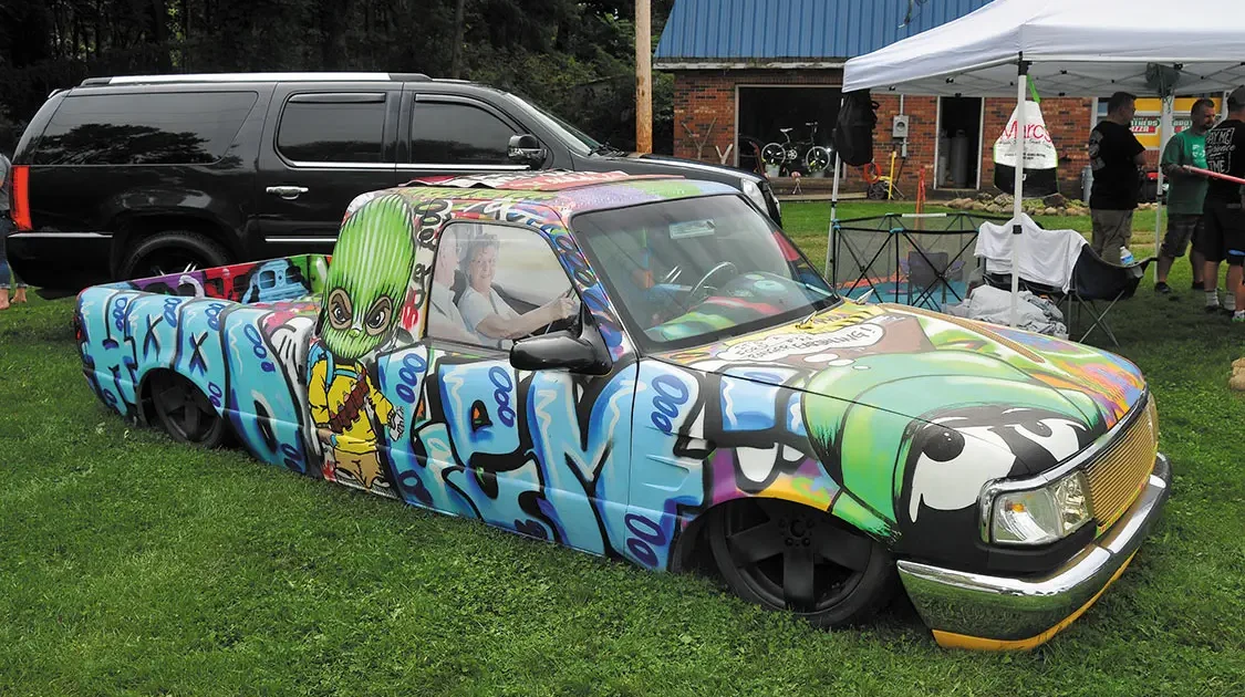 Plenty of vendors were there for everybody’s needs, too—like Buffalo Bills Jerky that had every type of meat treat you could think of and OG Street Eatz that was supplying everyone with high-quality cheesesteaks. Bobby’s Hot Wheels was selling die-cast cars and trucks of just about every model for the kids and parents. Illusive Design & Fabrication set up a booth to answer questions about how to design and build the perfect truck. And, of course, Outlaw Pinstriping was laying down stripes on trucks all weekend long. At the afterparty, held at the host hotel Comfort Suites in Hartville, Ohio, everyone had a blast until the late hours of the night.