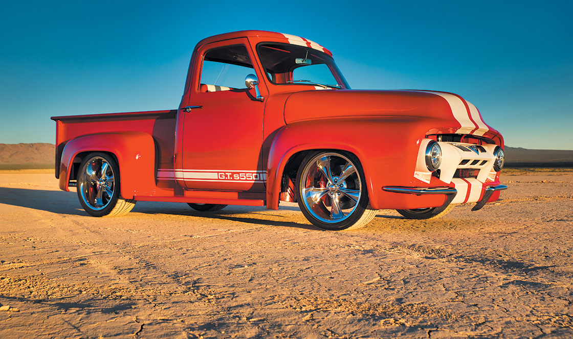 - 4-inch inner tubes over rear wheels, bed widened three inches, frenched front fenders and gravel pan, frenched rear taillights