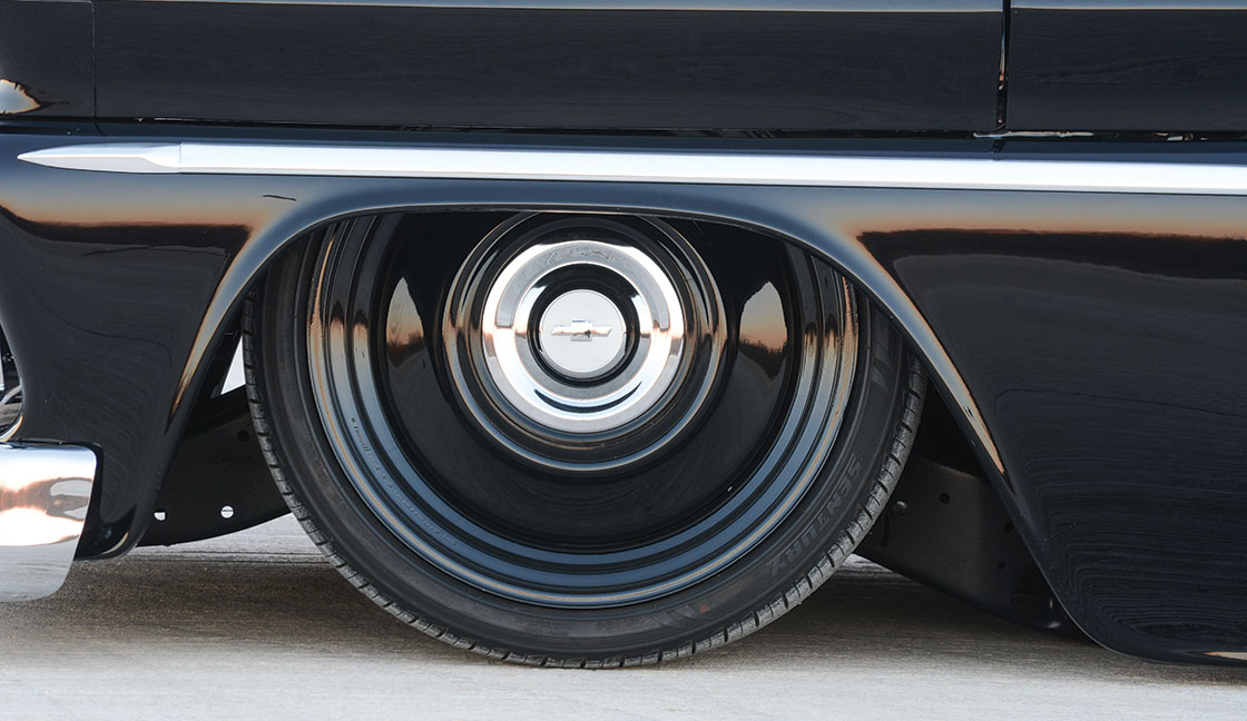 - 22x9 GM transit wheels with 1956 Chevy pickup caps