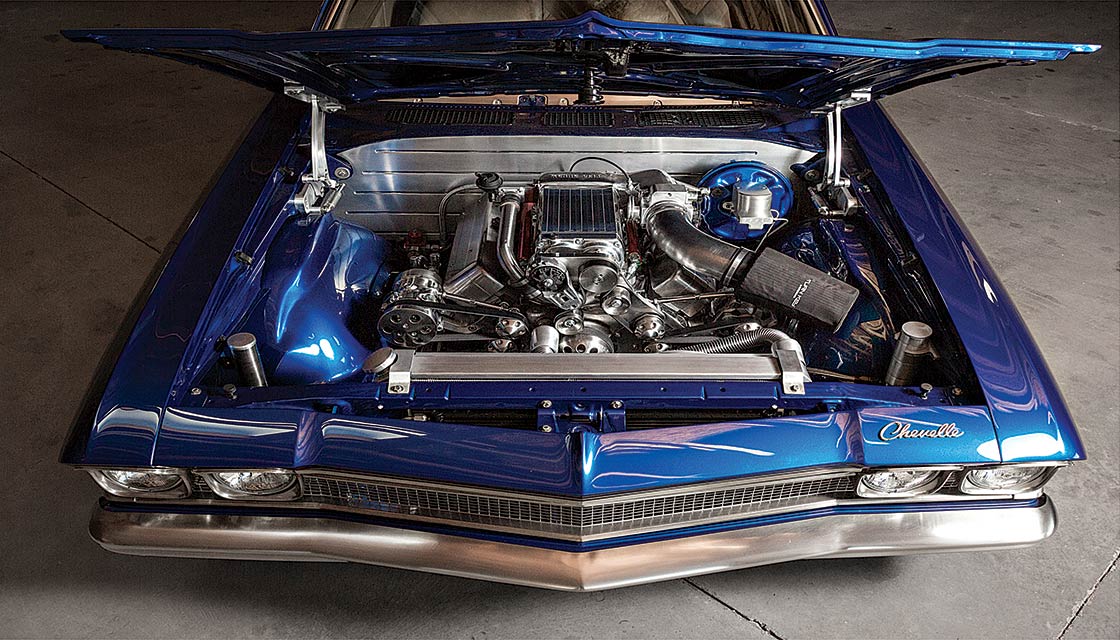 - 740-hp LS2, Kenne Bell supercharger, brushed nickel accessories, TCI six-speed transmission, Mooneyes pushbutton shifter, Vintage Air front runner, Magnaflow stainless steel exhaust, Ron Davis radiator, custom intercooler, Painless Performance wiring, Kinetik HC2000 batteries