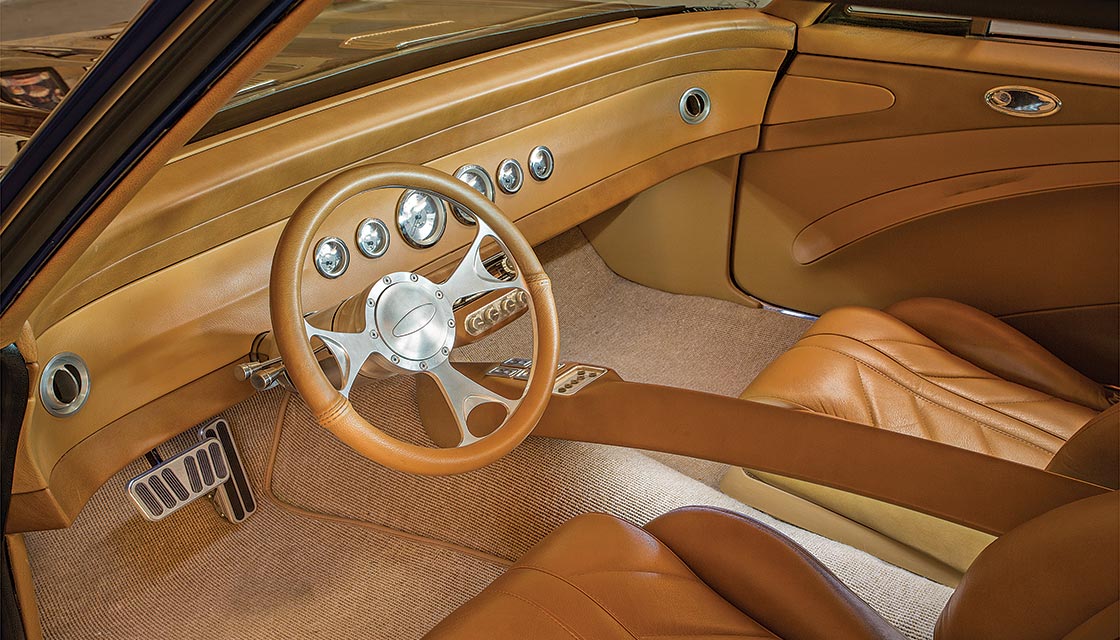 - Custom door panels, custom dash, Classic Instrument gauges, custom floating center console, Vintage Air Gen IV A/C, Glide Engineering bucket seats, Bentley leather, ididit steering column, Budnik Revolver steering wheel, Rockford Fosgate sound system, Dynamat sound deadener
