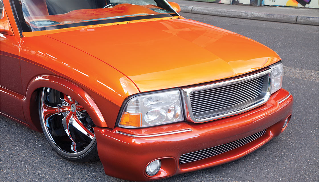 - PPG custom-mixed Bitchin’ Pearl Orange top, PPG Orange Crush from a Ford Edge bottom