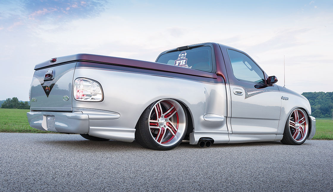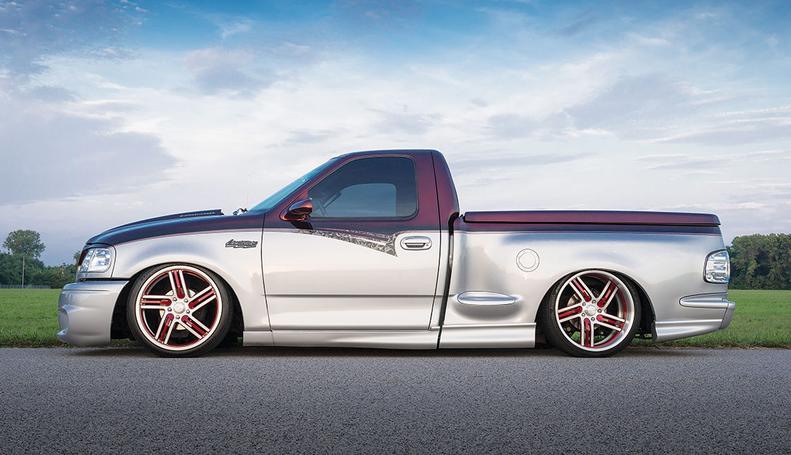 - Custom hand-laid fiberglass subwoofer enclosure and linear-actuated amp rack in bed