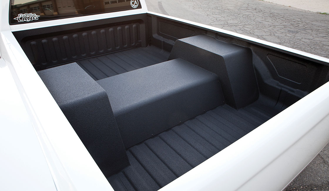 SPECIAL THANKS FROMTHE OWNER: “All the guys at Kindig-it Design for helping me make some tough decisions. Pringle, Will, David, Manuel and Sergio at California Audio for all the help and support. Also Kicker, PPG and Justin at JS for the sweet console wrap. Sterling at Industrial Injections for being a straight shooter, and of course, my family and my club, Severed Ties.”