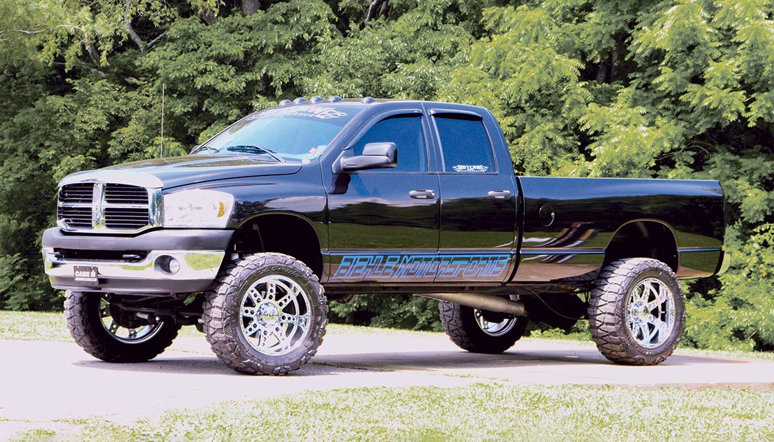 Engine: Exterior modification: De-badged with new custom black metallic paint 6-in. lift kit 22-in. XD Diesel wheels 37-in. Nitto Mud Grapplers Recon smoked LED taillights Recon smoked LED cab lights AMP Research PowerSteps Kleinn Air Horn