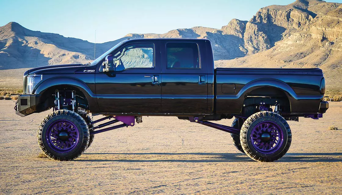 - 24-inch American Force 10-lug Super Dually series Shift wheels with purple powder-coat