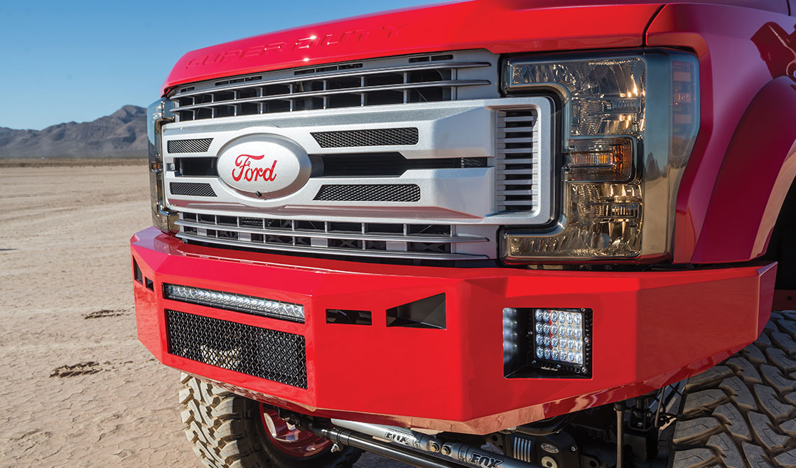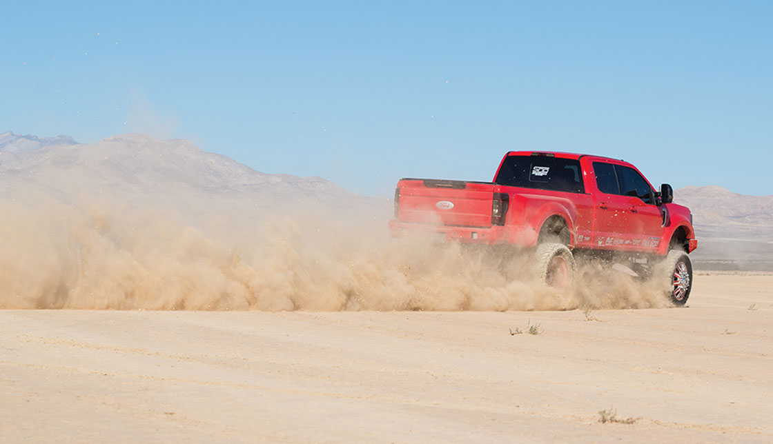 - RIZE Industries 12-inch lift with 4-link long arm, custom cross member and rear traction bars