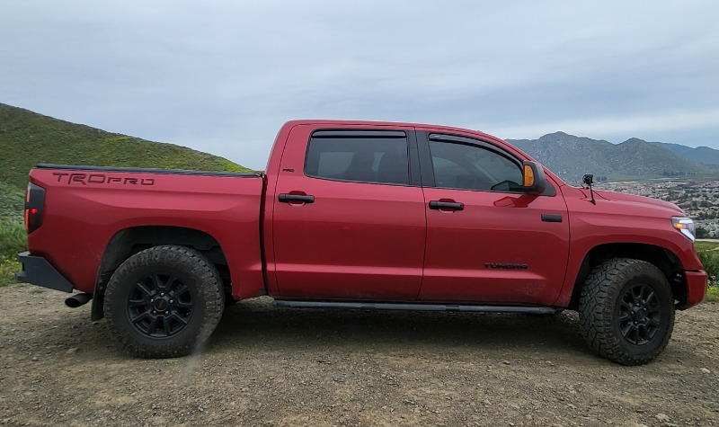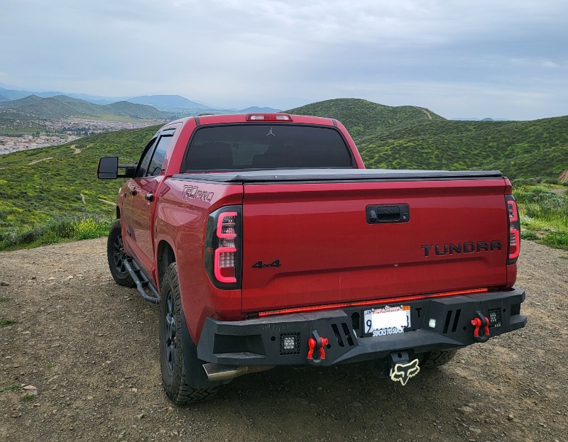 . Up front, TRD-tuned springs are matched to oversize 2.5-in. remote-reservoir Bilstein® shocks for a 2-in. lift. In the rear, we match similarly massive Bilstein® shocks to our TRD off-road leaf spring. Built for tough terrain, this suspension maximizes wheel travel and features advanced 3-stage compression dampening to help knock the edge off rough trails.