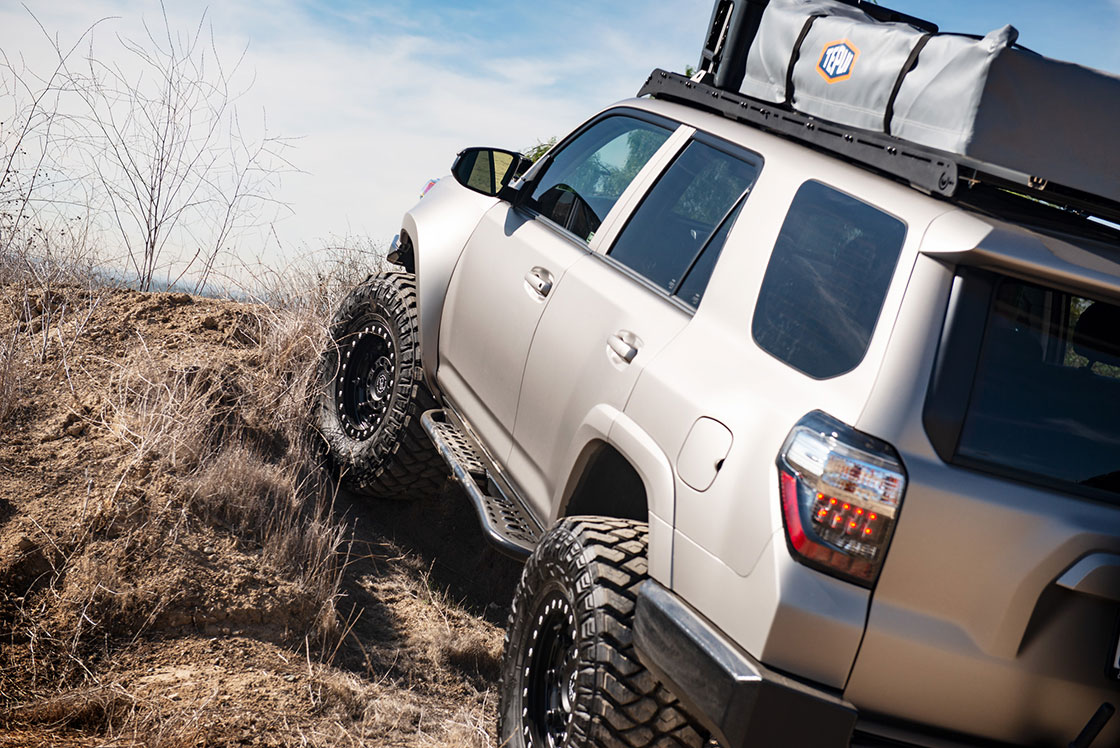 - FRONT:Â CAMBURG 3.5-INCH PER SIDE LONG TRAVEL THAT ADDS ABOUT 13-14-INCH WHEEL TRAVEL. FOX 2.5-INCH DSC COILOVER WITH EXTERNAL RESERVOIR AND 2.5 FOX 3 TUBE BYPASS SHOCK