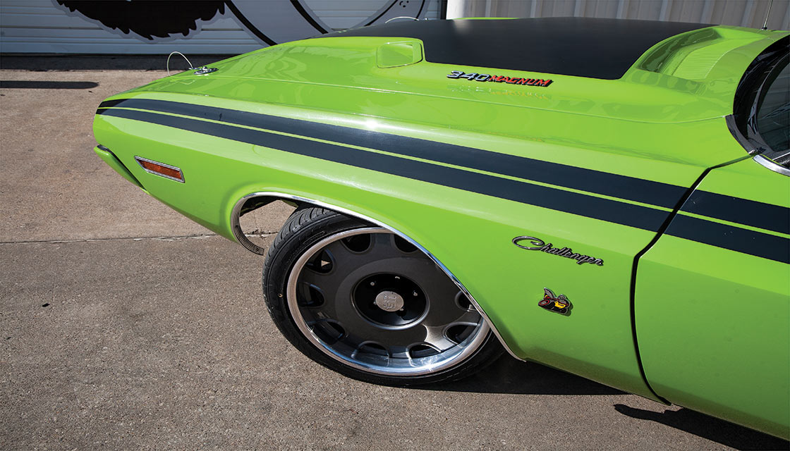- Stock Mopar body panels, hood, hood hinges, front fenders, grille, front bumper, door skins, floor pans, floor pan coatings, roof, rear quarter panels, exhaust port heatshields, trunk lid, bumper, and rear taillight bezels and lenses