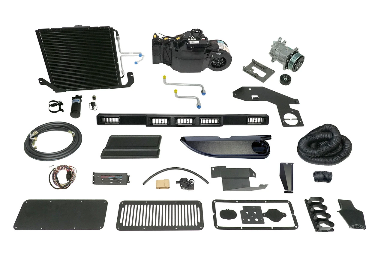 The complete kit also includes a compressor with a bracket that adapts to the factory drive system, a bolt-in condenser assembly, pre-crimped refrigerant lines and step-by-step installation instructions.
