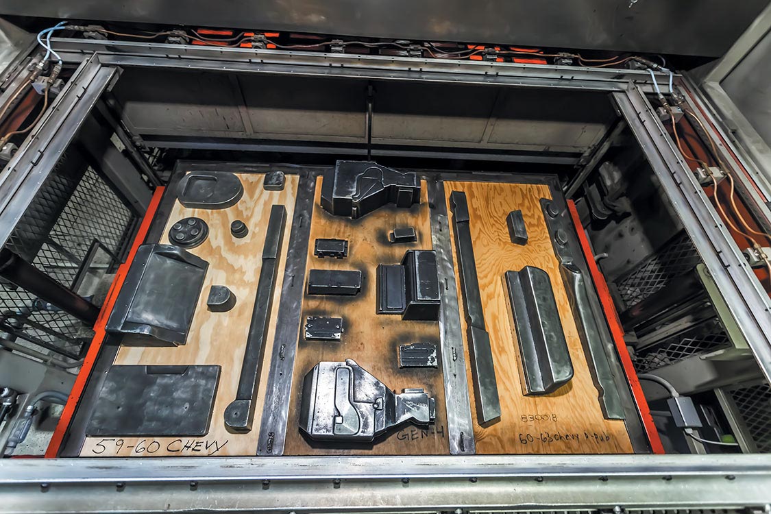 The metal brackets are all hung on a wire rack and dipped into a cleaning solution before being covered with a protecting coating so it lasts as long as the truck.