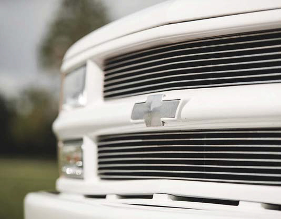 A roll pan replaced the factory rear bumper and the tailgate and stake pockets were shaved for a smooth and clean finish. Up front, a painted smooth front bumper replaces the original. Luis Berrios at Superior Craftsman sprayed the fresh white Spies Hecker paint. Clear headlights, marker lights, a billet grille insert and billet bowtie round out the custom exterior style.
