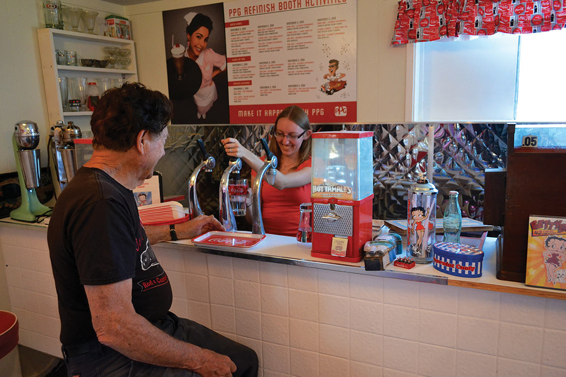 Next, was a tour through Windy’s Museum. From the outside, it’s not much more than a little old roadside service station, but inside, it’s a trip down memory lane filled with photos, trophies, movie props, model cars, and stories galore. Stepping inside, Gene was simply gushing to show us antiques from his personal collection, as well as from his family life. There is even a tribute to his favorite soda shop from the 1950s.