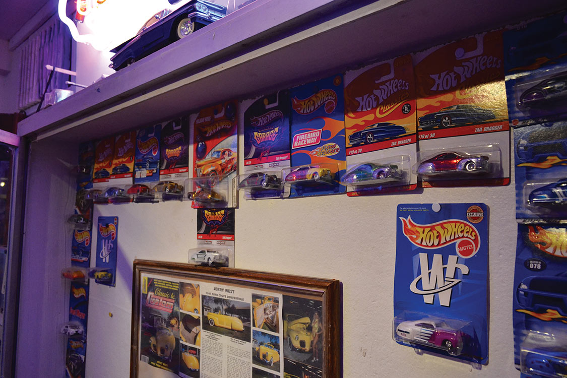 Further in, we passed through a room dedicated to TV and movie vehicles, and even got to stand beside his futuristic 1966 creation “Reactor”, as Gene explained how it was built and where the car appeared on-screen in multiple shows. The walls are covered with photos of film cars that he personally had a hand in creating, from Bewitched to Blade Runner to Back to the Future. Also, we were sure not to miss the room filled with all of the scale model kits and Hot Wheels he helped create. Got Tail Dragger? (See the sidebar below.)