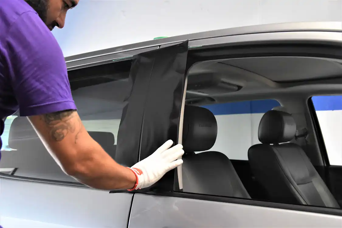 Miguel’s keen eye spotted our worn and scratched side window pillars which came from the factory in black. Miguel recommended applying a new swatch of black vinyl so it covered the old, scratched pillars. He said he could have it done in about 30-minutes. True to his word, he transformed the old faded black window side pillars into ones that looked brand new! Good job, Miguel!